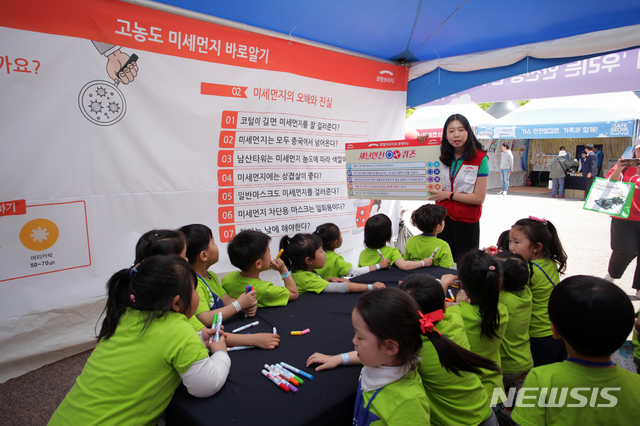 【서울=뉴시스】김선웅 기자 = 희망브리지 전국재해구호협회가 10일 서울 여의도공원에서 열리고 있는 서울안전한마당에 참가해 어린이 재난안전 체험교육 '우리는 안전짱 친구들'을 개최, 재난안전 OX 퀴즈 프로그램을 진행하고 있다. 2019.05.10. (사진=희망브리지 전국재해구호협회 제공)