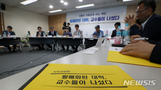 이날 간담회에는 민주화를위한전국교수협의회, 전국교수노동조합, 전국국공립대학교수회연합회, 한국비정규교수노동조합, 한국사립대학교수회연합회 등 5개 단체가 참가했다. 2019.05.22.