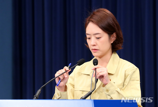 【서울=뉴시스】전신 기자 = 고민정 청와대 대변인이 30일 청와대 춘추관 대브리핑룸에서 헝가리 유람선 침몰 사고와 관련해 문재인 대통령이 "헝가리 정부와 협력해 가용한 모든 자원을 총동원한 구조 활동을 하라"고 지시했다고 밝히고 있다. 2019.05.30.