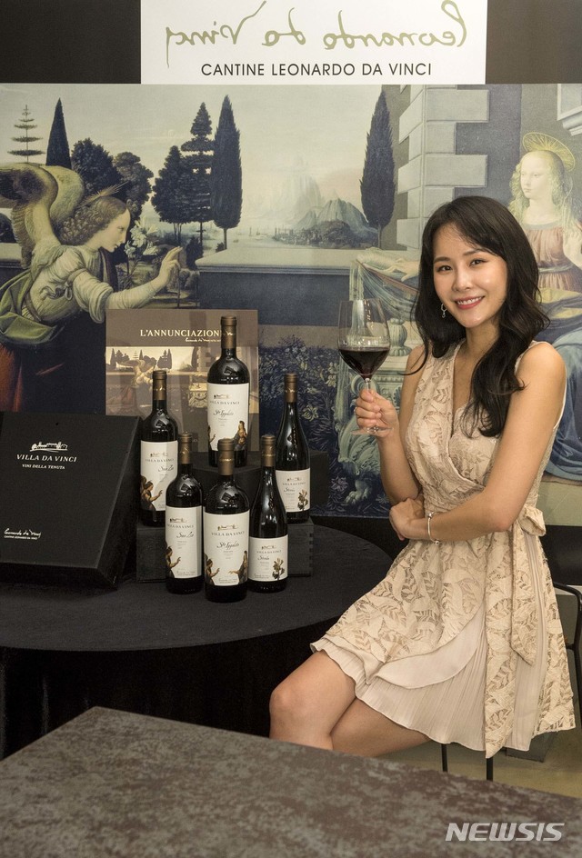 【서울=뉴시스】19일 와인수입사 나라셀라에서 레오나르도 다 빈치 서거 500주년을 기념하여 예수의 잉태를 소재로 한 다 빈치의 명화 '수태고지'를 레이블로 한 슈퍼투스칸 와인 3종을 출시했다. 2019.06.19. (사진=나라셀라 제공)