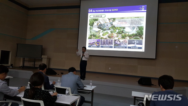 【창원=뉴시스】 강경국 기자 = 정창선 경남로봇랜드재단 원장이 3일 마산로봇랜드 회의실에서 창원시청 출입 기자 간담회를 개최한 가운데 로봇랜드의 주요 시설과 공공부문 등에 대해 설명하고 있다. 2019.07.03.