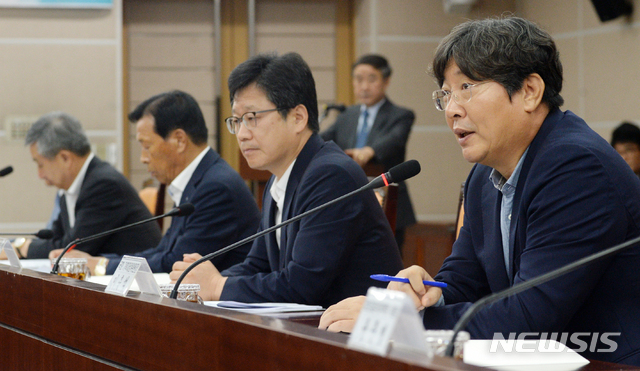 【전주=뉴시스】 김얼 기자= 일본 경제침략 대책 민·관·정 연석회의가 12일 전북 전주시 전북도청 종합상황실에서 실시된 가운데 이춘석 기획재정위원장이 인사말을 하고 있다. 2019.08.12.