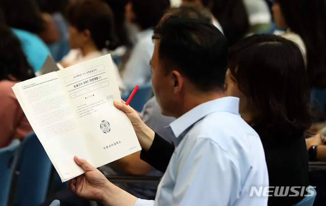 【서울=뉴시스】김선웅 기자 = 17일 오후 서울 서대문구 이화여자대학교 대강당에서 열린 2020학년도 수시모집 지원전략 설명회에서 참석 학부모 및 수험생들이 이대 입시 설명을 듣고 있다. 2019.08.17.