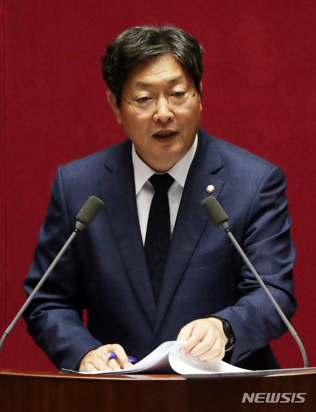 【서울=뉴시스】 박영태 기자 = 26일 오후 서울 여의도 국회에서 열린 제371회 국회(정기회) 본회의 정치분야 대정부질문에서 이춘석 의원이 질문하고 있다. 2019.09.26.