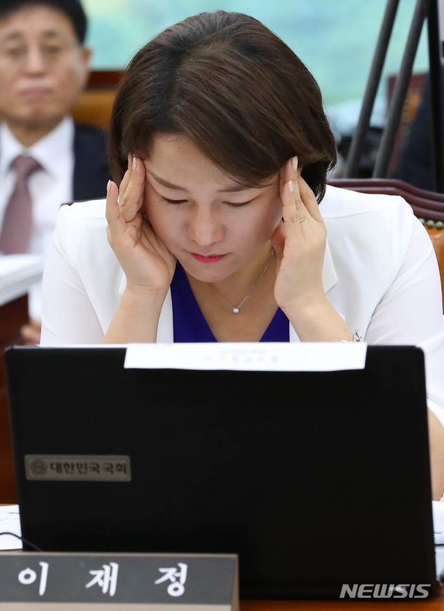 【서울=뉴시스】 장세영 기자 = 더불어민주당 이재정 의원이 29일 오후 서울 여의도 국회에서 열린 행정안전위원회 2019년도 국정감사에 참석해 피곤한듯 머리를 누르며 질의 자료를 살펴보고 있다. 2019.10.02.