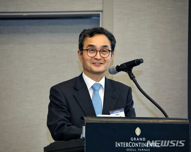 【서울=뉴시스】박원주 특허청장이 29일 오전 서울 강남구 그랜드 인터컨티넨탈 서울 파르나스 호텔에서 열린 법제연구원 입법정책포럼에서 '지식재산 생태계 혁신전략과 입법과제'라는 주제로 특허청의 정책방향을 소개하고 있다. 2019.10.29. (사진=특허청 제공)