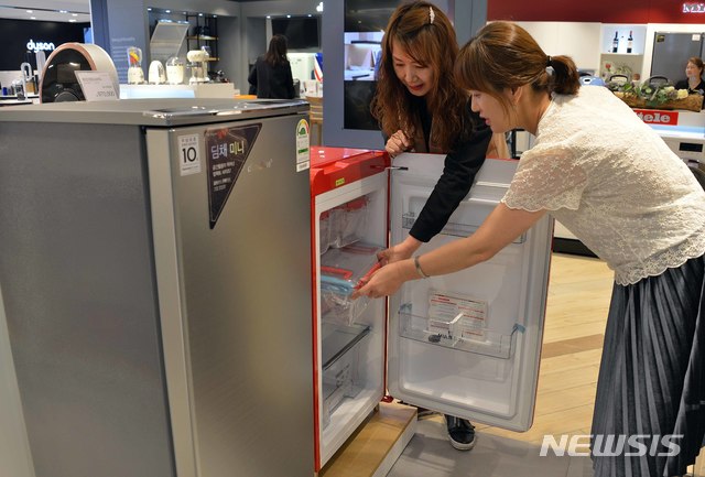 【부산=뉴시스】 롯데백화점 부산본점은 최근 1인 가구 증가 추세에 따라 백화점 6층의 한 매장에서 미니 김치냉장고를 선보이고 있다고 18일 밝혔다. (사진=롯데백화점 제공). 2019.11.18.