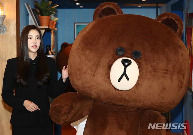 [서울=뉴시스] 이영환 기자 = 가수 겸 탤런트 손담비와 라인프렌즈 캐릭터 브라운이 5일 오전 서울 용산구 라인프렌즈 이태원 플래그십스토어에서 열린 브라운앤프렌즈 기념매달을 공개행사에 참석해 기념촬영을 하고있다. 2019.12.05.