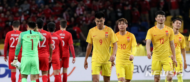 [부산=뉴시스]강종민 기자 = 18일 오후 부산 아시아드 주경기장에서 열린 2019 동아시안컵(EAFF E-1) 챔피언십 남자부 중국과 홍콩 경기. 양팀 선수들이 경기 종료 후 각자의 응원단 앞으로 향하고 있다. 2019.12.18.