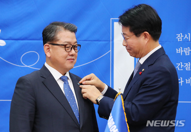 민주당 뱃지 달고 있는 인재영입 3호 김병주 예비역 대장