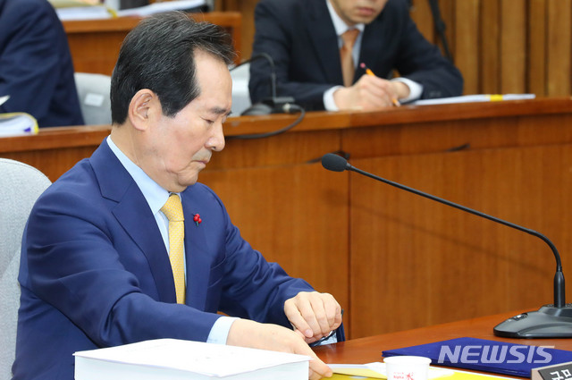 [서울=뉴시스] 장세영 기자 = 정세균 국무총리 후보자가 7일 서울 여의도 국회에서 열린 정무위원회의 국무총리(정세균) 임명동의에 관한 인사청문특별위원회에 참석해 청문회를 준비하고 있다. 2019.01.07.
