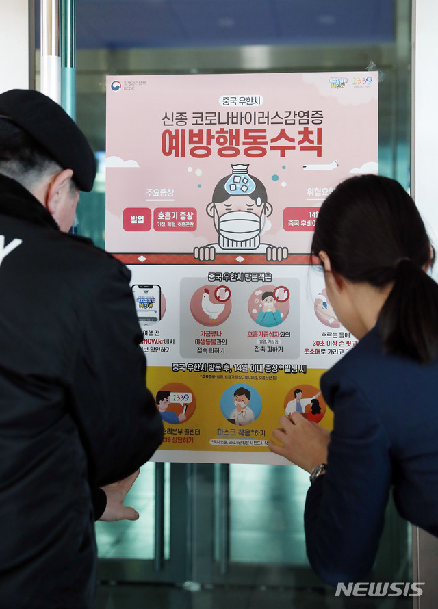 [서울=뉴시스] 최동준 기자 = 본격적인 설 명절 귀성이 시작된 23일 오전 서울 용산구 서울역에 신종 코로나바이러스 예방행동수칙 안내문이 설치되고 있다. 2020.01.23.