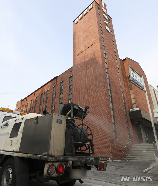 우한 폐렴 확진 환자 다녀간 명륜교회 방역작업