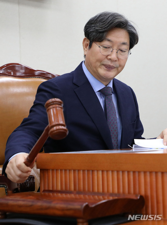 [서울=뉴시스] 김진아 기자 = 이춘석 기재위 위원장이 17일 서울 여의도 국회에서 열린 기획재정위원회 전체회의에서 회의를 주재하고 있다. 2020.03.17. [email protected]