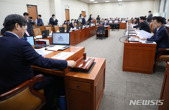 [서울=뉴시스] 김진아 기자 = 이춘석 기재위 위원장이 17일 서울 여의도 국회에서 열린 기획재정위원회 전체회의에서 회의를 주재하고 있다. 2020.03.17. [email protected]