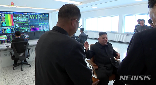 [서울=뉴시스] 북한 조선중앙TV가 2일 김정은 국무위원장이 평안남도 순천에 있는 인비료공장 준공식에 참석했다고 보도하고 있다. (사진=조선중앙TV 캡처) 2020.05.02.