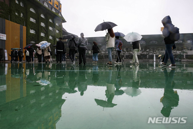 [서울=뉴시스] 박민석 기자 = 시험 응시자들이 24일 오전 SK그룹 신입사원 공채 필기시험(SKCT, SK종합역량평가)이 오프라인으로 진행되는 서울 성북구 서경대학교에서 거리를 두고 줄을 서 있다. 2020.05.24.
