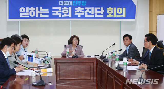 [서울=뉴시스] 장세영 기자 = 한정애 더불어민주당 일하는 국회 추진단장이 1일 서울 여의도 국회의원회관 제7감담회실에서 열린 더불어민주당 일하는 국회 추진단 전체회의에 참석해 현안관련 발언을 하고 있다. 2020.06.01.