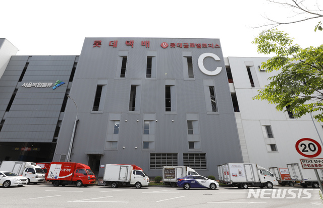 [서울=뉴시스] 고승민 기자 = 지난 13일 서울 송파구 롯데택배 동남권물류센터에서 코로나19 확진자가 발생한 것으로 알려진 15일 해당 건물이 적막한 모습을 보이고 있다. 롯데택배는 판정 사실을 통보받은 뒤 센터 문을 닫았다. 현재는 물류센터 방역을 마친 상태며 함께 일한 직원 159명이 자가격리 및 검사를 받고 있다. 48시간이 지난 오늘 오후8시께 운영을 재개할 계획이다. 2020.06.15