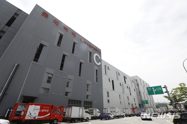 [서울=뉴시스] 고승민 기자 = 지난 13일 서울 송파구 롯데택배 동남권물류센터에서 코로나19 확진자가 발생한 것으로 알려진 15일 해당 건물이 적막한 모습을 보이고 있다. 롯데택배는 판정 사실을 통보받은 뒤 센터 문을 닫았다. 현재는 물류센터 방역을 마친 상태며 함께 일한 직원 159명이 자가격리 및 검사를 받고 있다. 48시간이 지난 오늘 오후8시께 운영을 재개할 계획이다. 2020.06.15