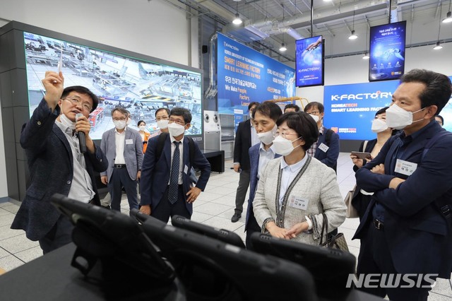 [서울=뉴시스]대통령직속 국가교육회의 고등·직업교육개혁전문위원회(위원장 장수명)가 2일 충남 천안에 위치한 한국기술교육대학교를 방문해 K-Factory 투어를 하고 있다. (사진=대통령직속 국가교육회의 제공) 2020.07.02.