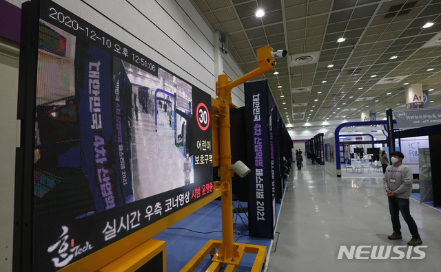 [서울=뉴시스] 이영환 기자 = 10일 오후 서울 강남구 코엑스에서 열린 대한민국 4차 산업혁명페스티벌 2021에서 사각지대 스마트 알리미가 전시되어 있다. 2020.12.10. [email protected]