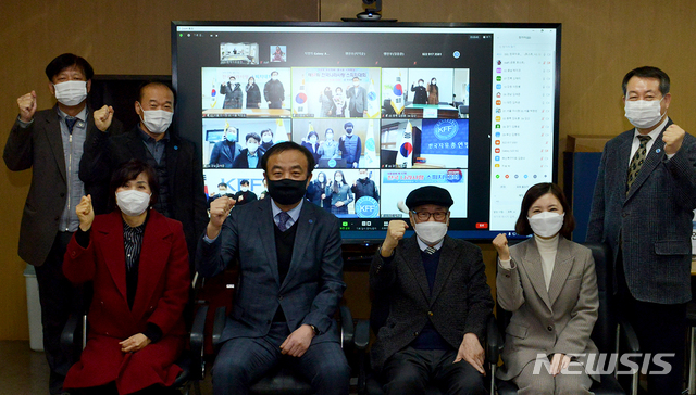 [서울=뉴시스] 조수정 기자 = 한국자유총연맹(총재 박종환)이 15일 오후 서울 남산 자유센터 온라인 회의실에서 코로나19 확산 방지를 위해 비대면으로 '제57회 전국 나라사랑 스피치대회'를 하고 있다. (사진=한국자유총연맹 제공) 2020.12.15.