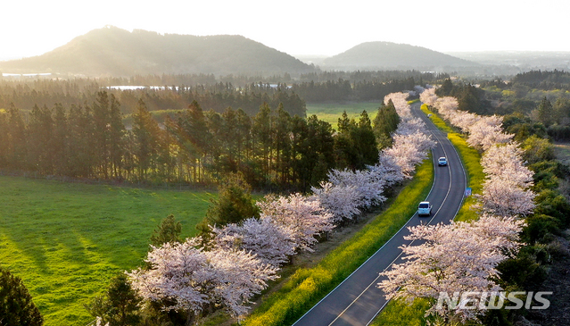 [서귀포=뉴시스]우장호 기자 = 맑은 날씨를 보이는 26일 오전 제주 서귀포시 표선면 녹산로에 봄의 전령 유채꽃과 벚꽃이 활짝 펴 지나는 이들의 시선을 끌고 있다. 기상청에 따르면 이날 제주도는 낮 기온이 21도 내외로 오르며 완연한 봄날씨를 나타내겠다. 2021.03.26. [email protected]