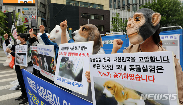 '세계 실험동물의 날', 동물실험 중단 촉구 퍼포먼스