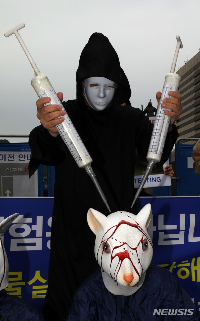 '세계 실험동물의 날', 동물실험 중단 촉구 퍼포먼스
