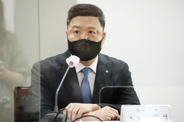 [서울=뉴시스]이영환 기자 = 권광석 우리은행장이 8일 오전 서울 마포구 서울신용보증재단에서 열린 코로나19 위기극복 지원을 위한 서울시 소상공인 4無 안심금융 지원 업무협약식에 참석해 인사말을 하고 있다. 2021.06.08. (공동취재사진) [email protected]