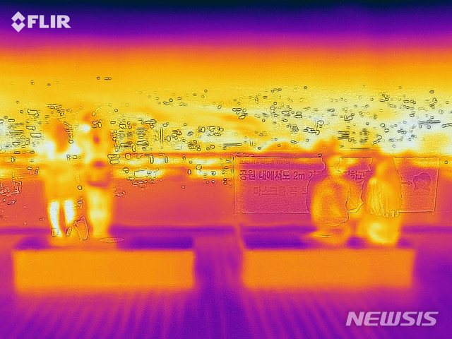 [서울=뉴시스] 고승민 기자 = 낮 찜통더위에 열대야까지 이어진 21일 저녁 서울 남산에서 열화상카메라로 바라본 서울 도심이 비교적 높은 온도를 나타내고 있다. 카메라 수치상으로 최고온도는 35도였다. 온도가 높을수록 붉은색, 낮을수록 푸른색을 나타낸다. 2021.07.21. [email protected]