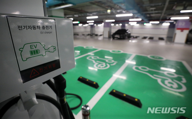 [서울=뉴시스] 고범준 기자 = 정부가 BIG3(반도체·미래차·바이오헬스) 추진회의에서 다가오는 2025년까지 전기차 급속충전기는 고속도로 휴게소 등 중심으로 1만2000개 이상, 완속 충전기는 도보 5분 거리 생활권에 50만기 이상, 상용차 충전소는 버스·택시 차고지 중심으로 2,300개 이상 구축되도록 추진하겠다고 밝혔다. 사진은 29일 오후 서울 강남구 코엑스 주차장에 전기자동차 충전기가 설치되어 있는 모습. 2021.07.29. [email protected]