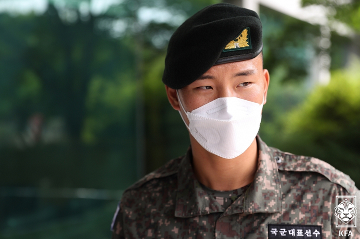 [서울=뉴시스] 김천 상무 정승현이 30일 경기 파주시 축구 국가대표트레이닝센터(NFC)에서 진행되는 축구대표팀 소집 훈련에 참석하고 있다. 파울루 벤투 감독이 이끄는 한국 축구대표팀은 오는 9월 2일 이라크, 9월 7일 레바논과 경기를 치른다. (사진=대한축구협회 제공) 2021.08.30. [email protected] *재판매 및 DB 금지