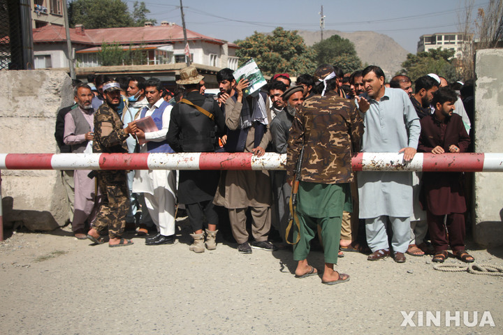 [카불=신화/뉴시스] 6일(현지시간) 아프가니스탄의 수도 카불의 여권 발급 사무소 앞에 여권을 발급받으려는 시민들이 입장을 기다리고 있다. 아프간을 장악한 탈레반 정부는 지난 5일부터 일반 국민에게 여권 발급 업무를 재개한다고 밝혔다. 2021.10.07.