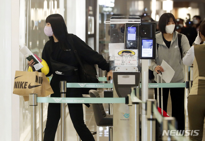 [인천공항=뉴시스] 홍효식 기자 = 학교폭력과 가정폭력 의혹에 휩싸인 이재영, 이다영(왼쪽) 쌍둥이 자매가 16일 오후 인천국제공항을 통해 그리스로 출국하고 있다. 이들은 지난 9일 개막한 2021-22 시즌 그리스 리그 PAOK 테살로니키 구단에 합류한다. 2021.10.16. [email protected]