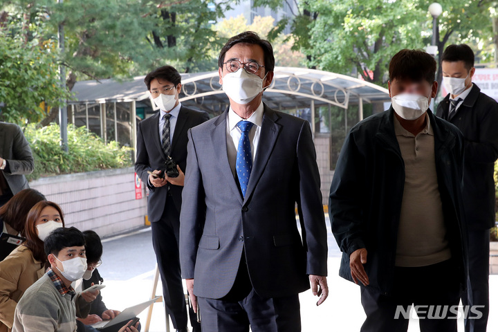 [서울=뉴시스] 김병문 기자 = '검찰이 노무현재단의 계좌를 들여다 봤다' 등 발언으로 한동훈 검사장의 명예를 훼손한 혐의를 받는 유시민 노무현재단 이사장이 21일 오후 서울 마포구 서울서부지방법원에서 열린 라디오에 의한 명예훼손 혐의 1차 공판기일에 출석하고 있다. 2021.10.21. [email protected]