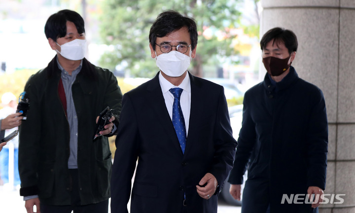 [서울=뉴시스] 추상철 기자 = 유시민 노무현재단 전 이사장이 18일 오후 서울 마포구 서울서부지방법원에서 열린 '한동훈 검사장 명예훼손 혐의'와 관련 2차 공판에 출석하고 있다. 2021.11.18. [email protected]