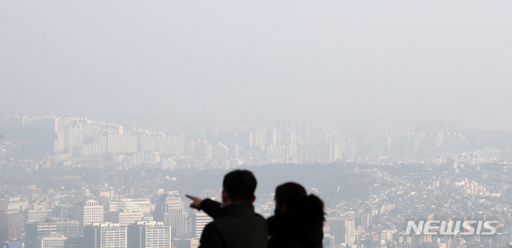 [서울=뉴시스] 조성우 기자 = 서울 등 수도권 미세먼지 농도가 '나쁨' 수준을 보인 12일 오전 서울 남산에서 바라본 서울 도심이 뿌옇다. 2021.12.12. [email protected]