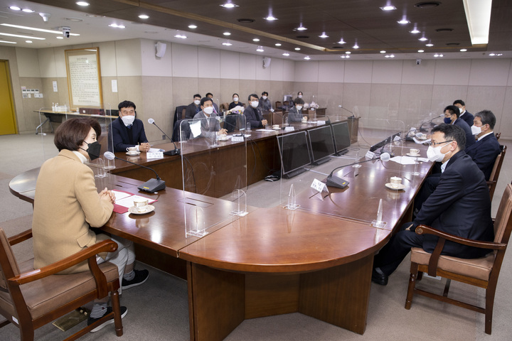 [서울=뉴시스] 정병혁 기자 = 한정애 환경부 장관이 13일 정부세종청사에서 열린 배출업소 환경관리실태 우수 지자체 포상식에서 발언하고 있다. (사진=환경부 제공) 2021.12.13. [email protected] *재판매 및 DB 금지