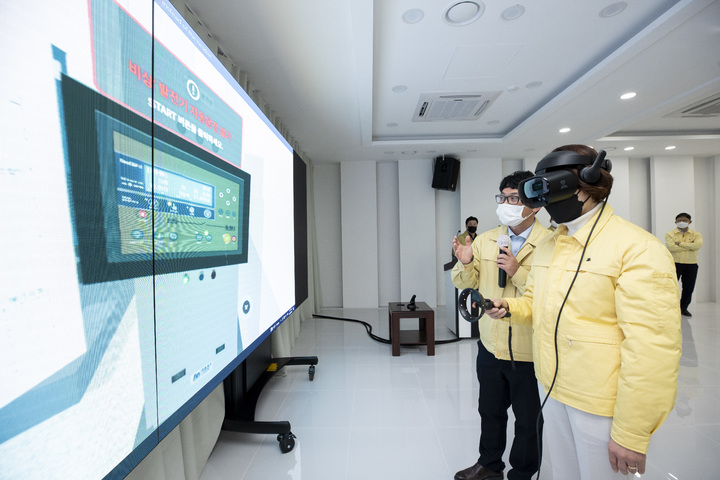 [서울=뉴시스] 조수정 기자 = 한정애 환경부 장관이 16일 오후 경기도 화성시 매송면 한국수자원공사 화성정수장을 방문, 코로나19 확산에 대비, 광역상수도 정수장의 방역상황 및 대응방안을 점검하고 국내 최초로 도입한 광역상수도 스마트(AI) 정수장 자율운영을 시연하고 있다. (사진=환경부 제공) 2021.12.16. [email protected]