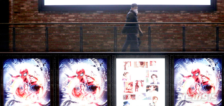 [서울=뉴시스] 김병문 기자 = 영화 '스파이더맨:노 웨이 홈'이 코로나19 팬데믹 이후 국내 개봉한 영화 중 처음으로 600만명 관객을 돌파했다. 3일 오후 서울 용산구 한 영화관에 스파이더맨 영화 포스터가 보이고 있다. 2022.01.03. [email protected]