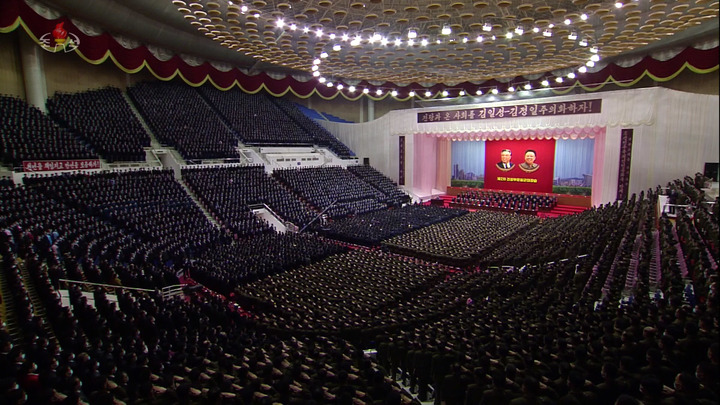 [서울=뉴시스] 북한 조선중앙TV는 지난 8일 2차 건설 부문 일꾼 대강습을 진행했다고 9일 보도했다. 김정은 조선노동당 총비서 겸 국무위원장은 참석 대신 서한을 보내 건설 사업 방향과 과업을 지시했다. (사진 = 조선중앙TV 캡처) 2022.02.09. [email protected] *재판매 및 DB 금지