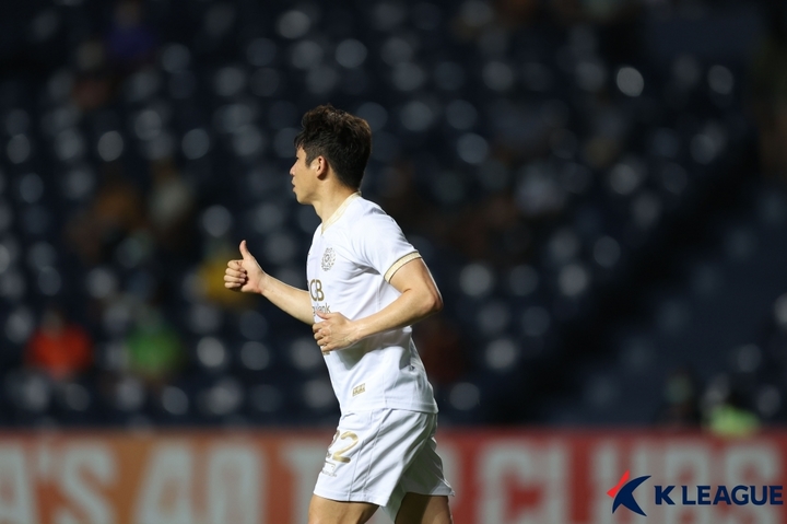 [서울=뉴시스] 조수정 기자 = 30일 태국 부리람스타디움에서 열린 2022 아시아축구연맹(AFC) 챔피언스리그 조별예선 F조 대구 FC와 라이언시티 경기 대구 이근호가 골 득점 세리머니 하고 있다.(사진=한국프로축구연맹 제공) 2022.05.01. [email protected]
