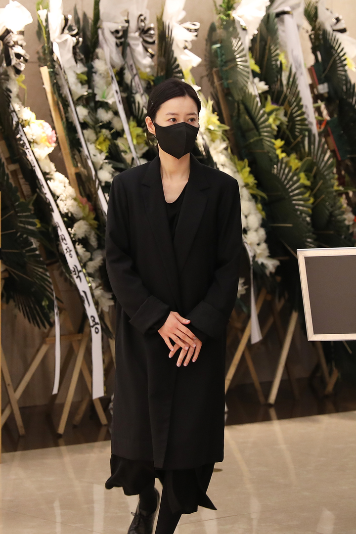 [서울=뉴시스] 정병혁 기자 = 배우 정유미가 8일 서울 강남구 삼성서울병원 장례식장에 마련된 고(故) 강수연 빈소를 조문한 뒤 나서고 있다. (사진=故 강수연 배우 장례위원회 제공) 2022.05.09. [email protected] *재판매 및 DB 금지