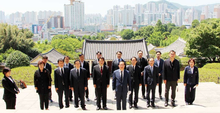 [부산=뉴시스] 하윤수 부산교육감 당선인이 2일 오전 부산 동래구 충렬사를 참배하고 있다. (사진=하윤수 당선인 측 제공) 2022.06.02. [email protected]