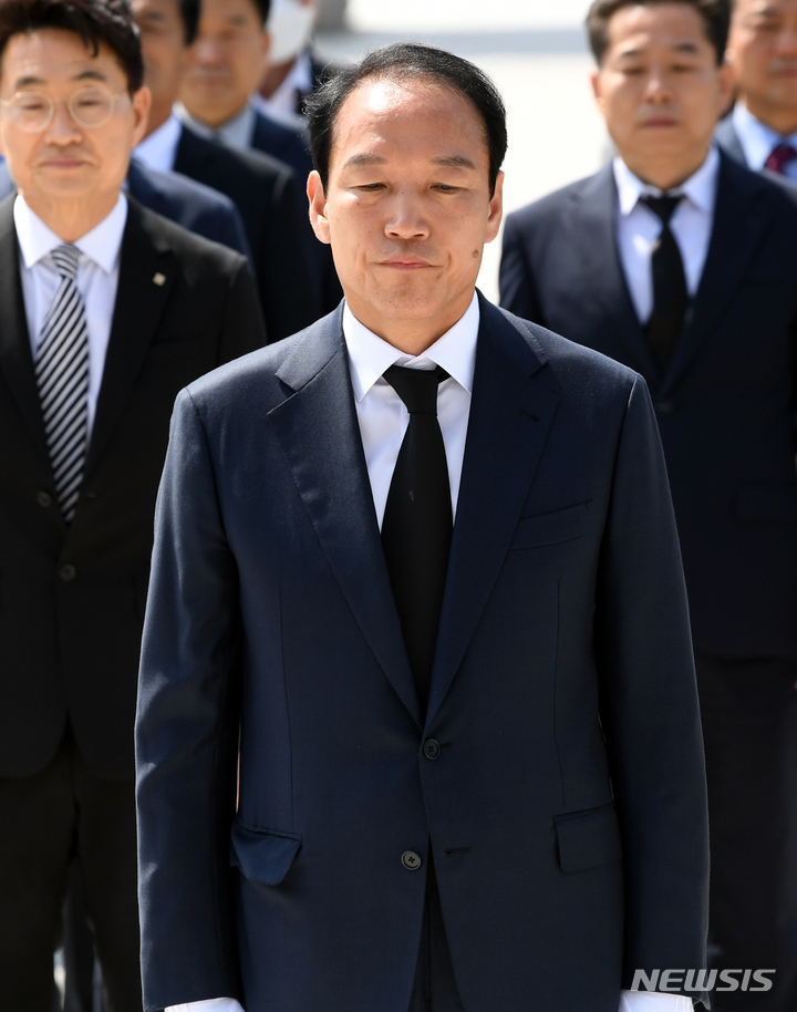 [광주=뉴시스] 류형근 기자 = 제8회 전국동시지방선거 광주지역에 출마했던 국민의힘 주기환 광주시장 후보가 2일 오전 광주 북구 운정동 국립5·18민주묘지를 참배하고 있다.  2022.06.02. [email protected]