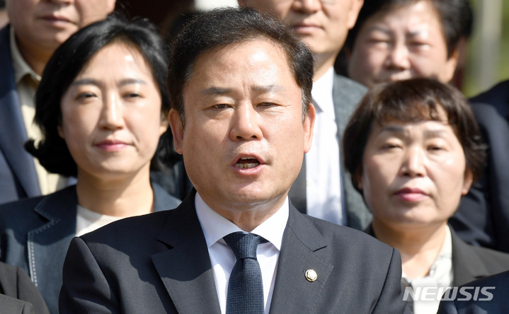 [광주=뉴시스] 류형근 기자 = 송갑석 더불어민주당 광주시당 위원장이 2일 오전 광주 북구 운정동 국립5·18민주묘지를 참배 한 뒤 제8회 전국동시지방선거 소회를 밝히고 있다. 2022.06.02. [email protected]