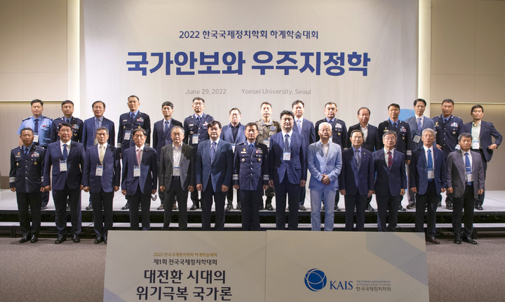 [서울=뉴시스] 정병혁 기자 = 정상화 공군참모총장이 29일 서울 서대문구 연세대학교에서 열린 공군-한국국제정치학회 공동 세미나에서 기념촬영을 하고 있다.(사진=공군 제공) 2022.06.29. [email protected] *재판매 및 DB 금지