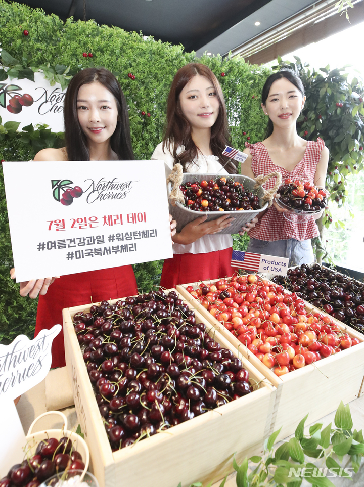 [서울=뉴시스] 김근수기자 = 미국북서부체리협회가 1일 오전 서울 강남구 역삼동의 한 카페에서 여름 제철 과일인 워싱턴체리를 소개하고 있다. 2022.07.01. [email protected]